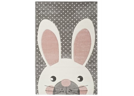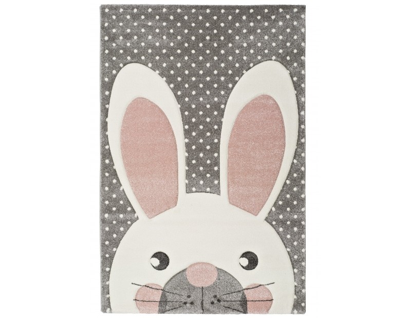 Encantadora y divertida alfombra para niños y niñas que llenará de ternura la habitación de los más peques. Pensada para dar protección y calidez acompañando sus primeros años, esta alfombra infantil encantará a grandes y pequeños con su simpático conejo blanco de enormes orejas que invita a compartir sonrisas y momentos inolvidables. Sus tonos pastel apagados la hacen ideal como alfombra para bebés, permitiéndoles, además, la necesaria libertad de movimientos en un espacio confortable.