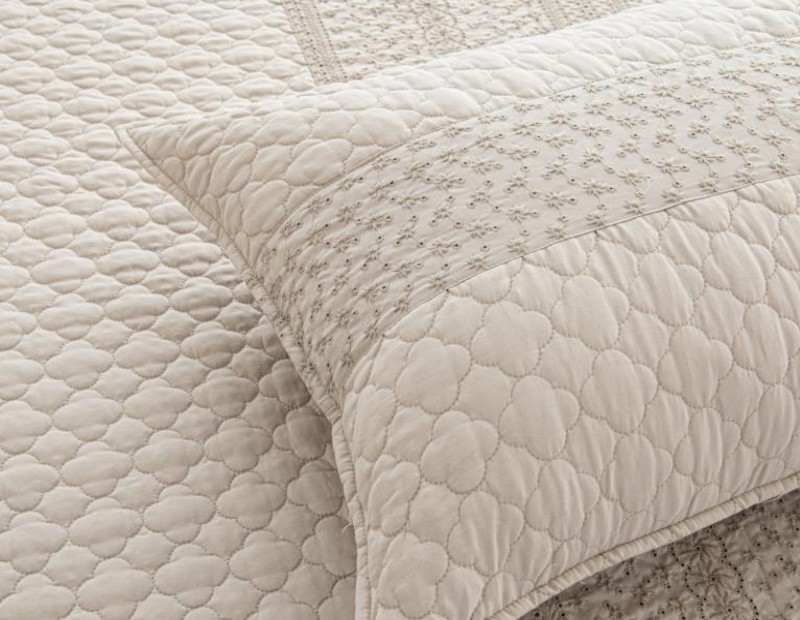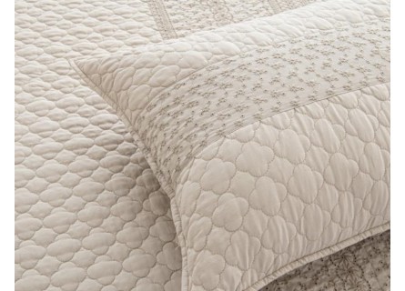 Colcha Laura de diseño cálido y romántico gracias a su diseño bordado a lo largo de la colcha.