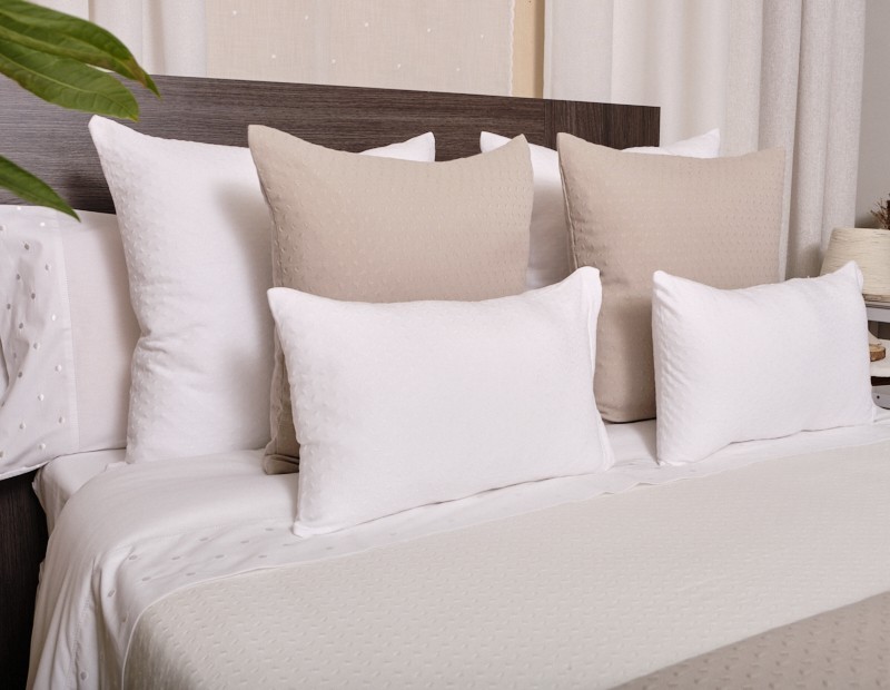 Es un diseño lencero fabricado con tejido de algodón. Es un diseño único que vestirá tu hogar de forma original y elegante.