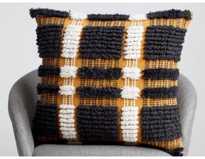 Cojín con Textura en Tonos Mostaza y Negro - Hidra