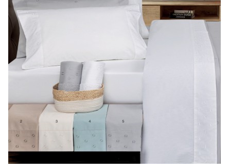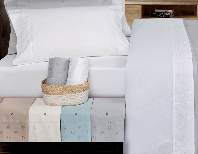 Juego de sábanas algodón bordado de la colección Granadella de nuestra firma NE HOME, ideal para vestir la cama con un estilo delicado, natural y duradero.
