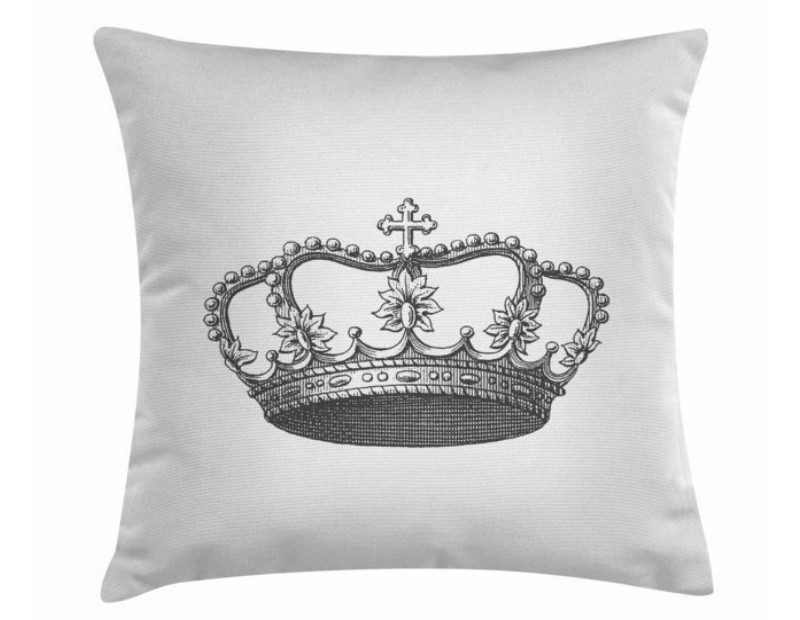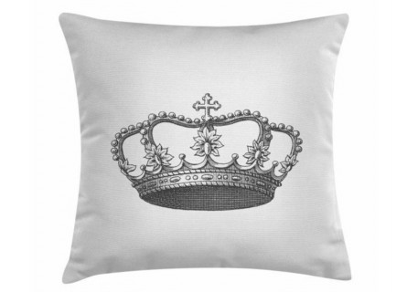 Funda de cojín con cremallera de nuestra colección Blanco&Negro con diseño de fondo blanco y dibujo estampado de una corona.