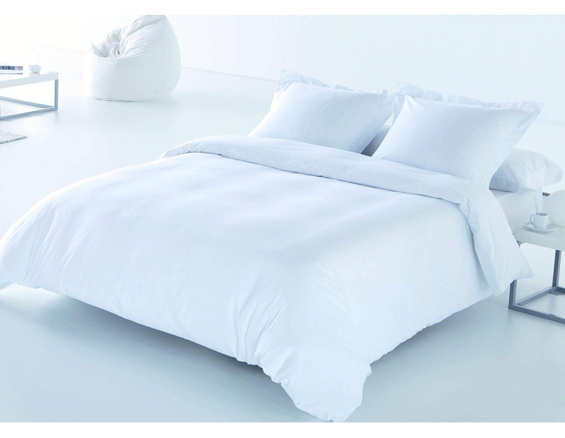 Juego de funda nórdica de 3 piezas en 50%algodón 50% poliéster con garantía de calidad. Es un diseño liso en blanco indicado principalmente para hostelería, hoteles, apartamentos, casas rurales etc. También este juego es una idea perfecta para tu dormitorio, como básico para dar un toque de luz y calidez. Incluye sabana bajera ajustable, saco y almohadón/es.