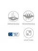 Transpirable, que no da calor. Producto impermeable, que impide el paso de líquidos. Posee propiedades antialérgicas, que lo convierten en una eficaz barrera anti ácaros.